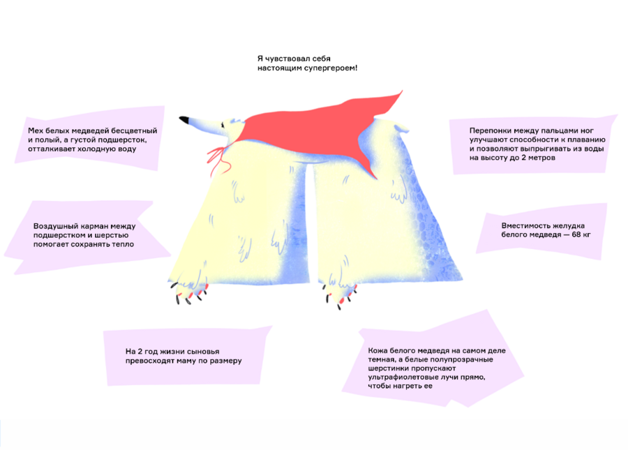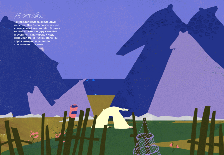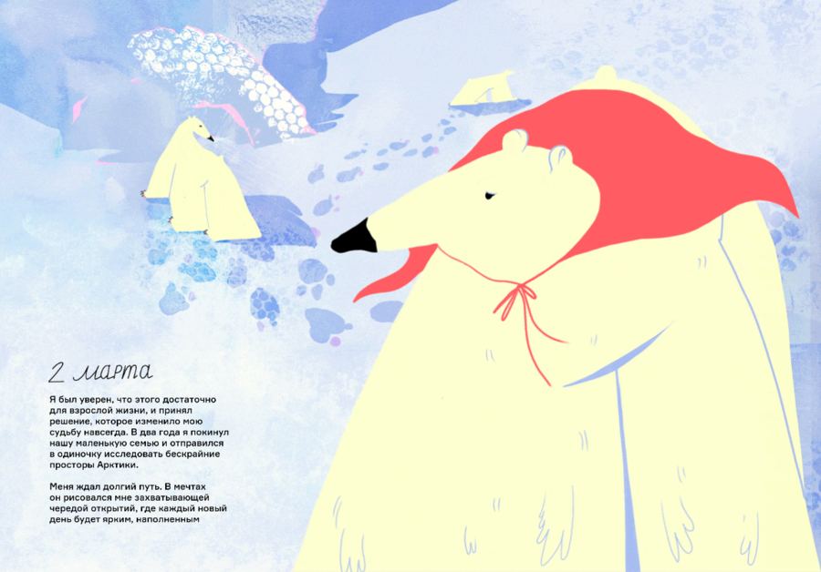 История от первого лица про путешествия белого мишки, который пытается адаптироваться к меняющемуся миру. По ходу истории герой сталкивается с серьезными трудностями, которые заставляют его повзрослеть, а детский взгляд на мир трансформироваться.