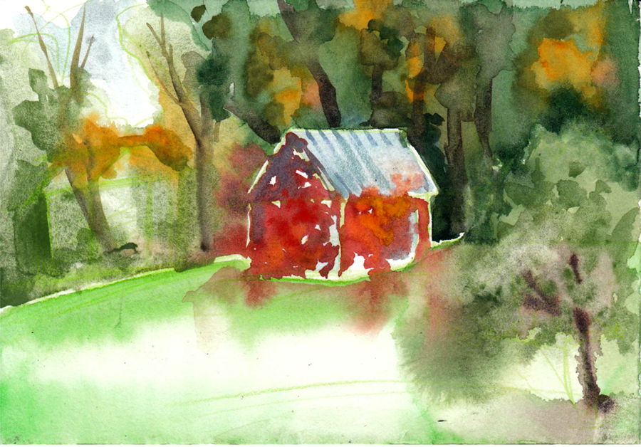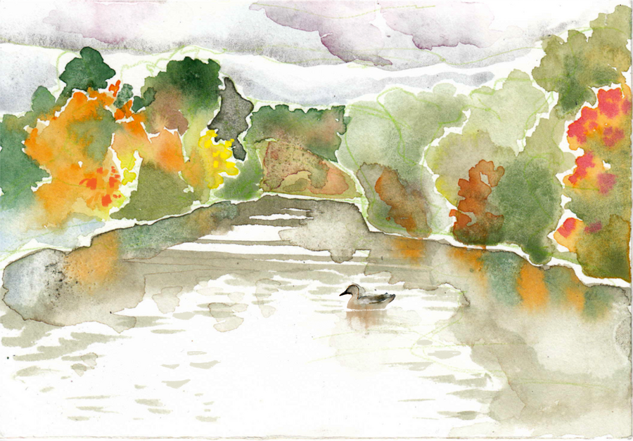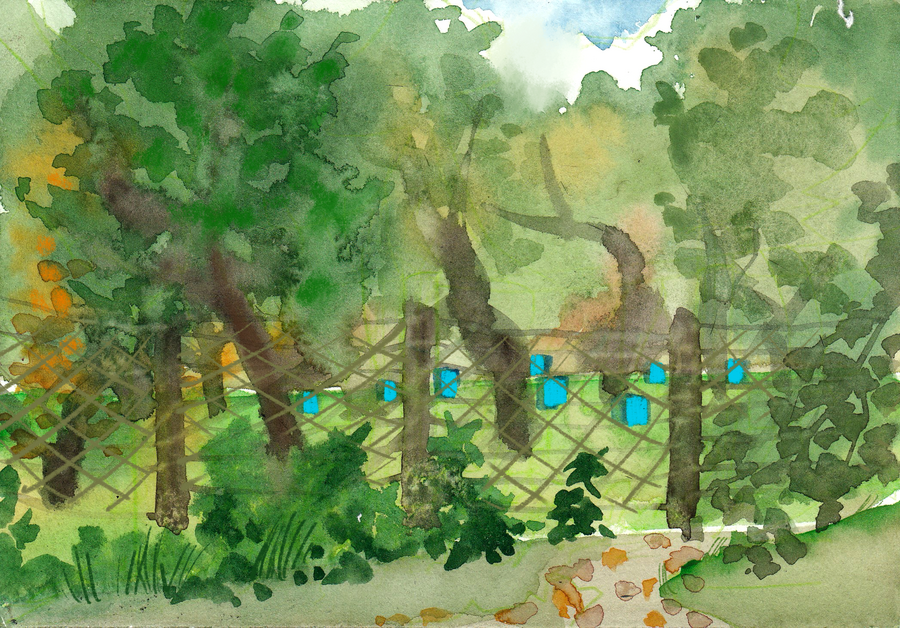 Я гуляла по Ясной и делала наброски акварелью. Было холодно, но здорово. Меня захватил азарт: очень хотелось зафиксировать на бумаге то, что видел глаз, ощущала кожа, чувствовало сердце. Наброски помогли соединиться с природой Ясной, нащупать стиль и дух комикса.