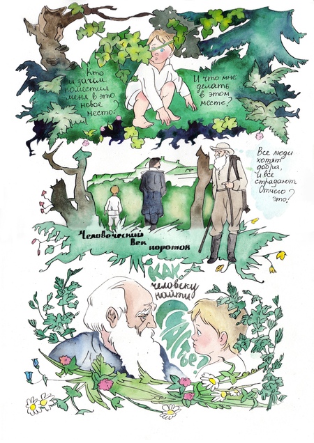 Будучи художницей, я задумала создать комикс, отсылающий и к природе, и к философскому труду Толстого