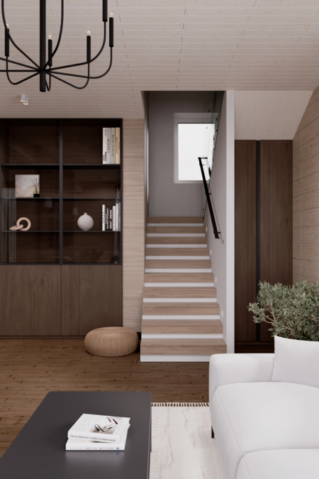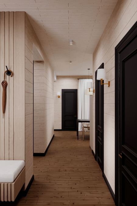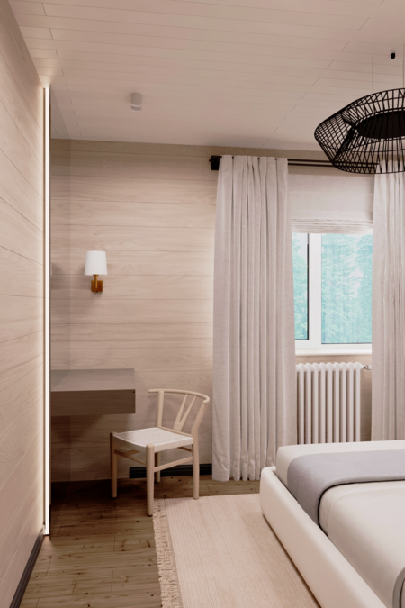 Главной задачей проекта являлось создание интерьеров загородного дома в Щелково для непостоянного проживания, интерьеры которого были вдохновлены обычной дачной отделкой, но с нотами современного минимализма и аккуратности. В отделке должны были использоваться преимущественно натуральные материалы, что поддерживало бы задачу интерьера — обеспечивать отдых и разгрузку своих обитателей от нервной жизни в центре каменных джунглей.