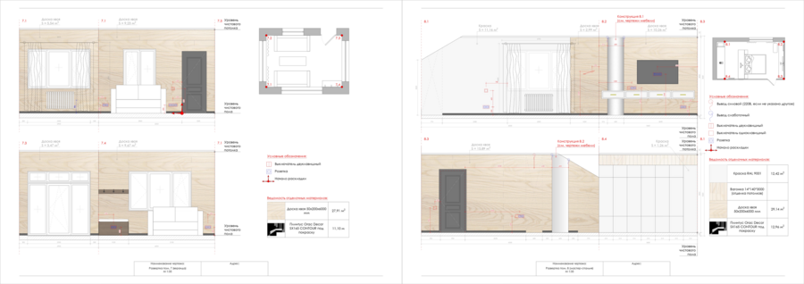 В рамках проекта были созданы и согласованы с заказчиком: планировочное решение, визуализации, чертежи, включающие в себя основные планы, развертки и мебельные чертежи. По итогам моей работы был создан полный дизайн проект с полным комплектом чертежей и комплектацией.