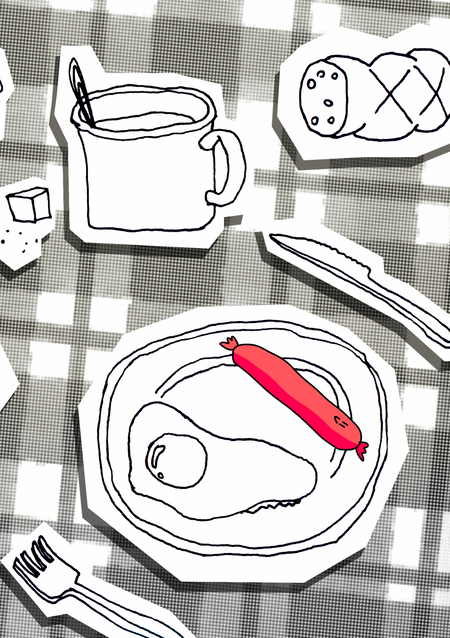 Анимационная работа выполнена в смешанной технике. Фон решён в виде коллажа из отсканированных скетчей гелевой ручкой, а основное действие выполнено в технике покадровой анимации.
